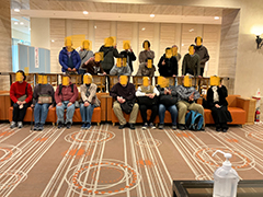 飛行場見学 ホテルで集合写真 月化粧工場